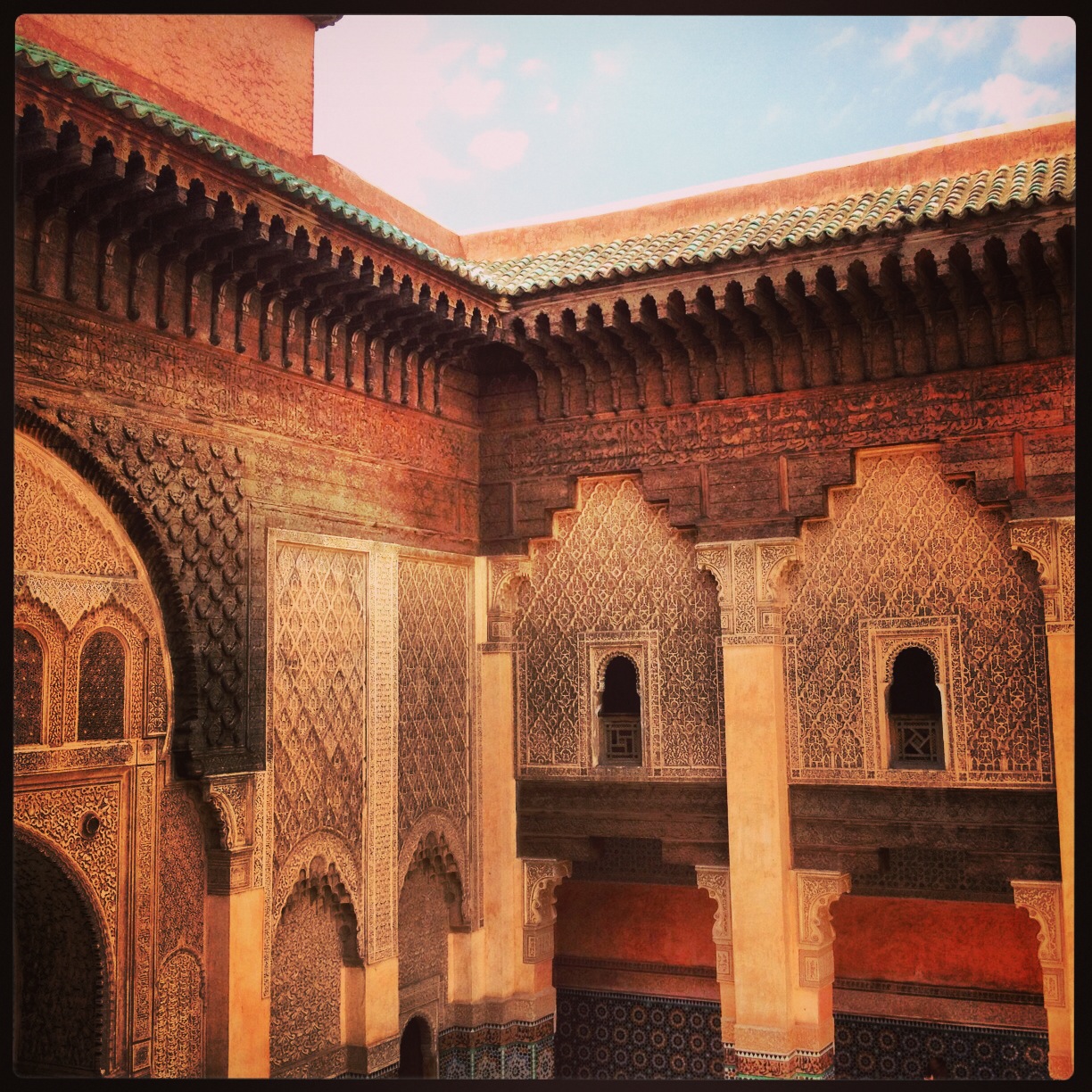 Sobrou pouco da arquitetura muçulmana antiga em Marrakesh, praticamente a universidade e uma torre da mesquita e nada mais. Diria ainda que a Medina é um pouco parecida com a 25 de Março, mas nada é Made in China, tudo é feito artesanalmente. O grande diferencial é estar em um lugar de cultura genuinamente árabe.